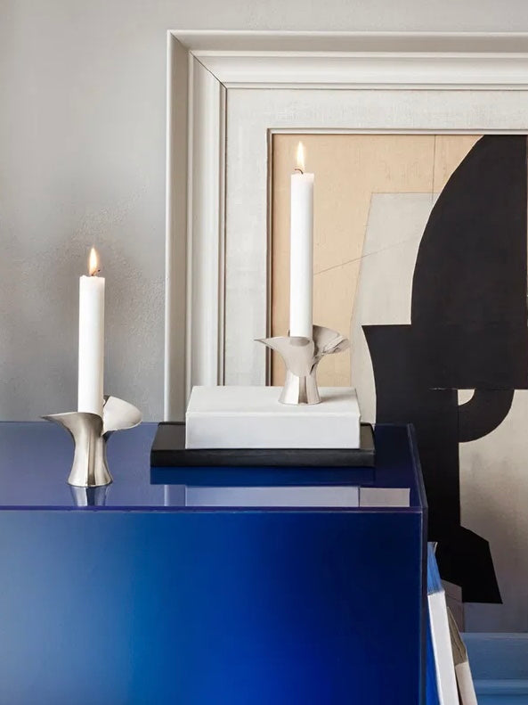 Das Set mit zwei Bloom Kerzenhaltern ist ein schönes Element in jedem Zuhause und das perfekte Geschenk für jemanden, den du schätzt. Die Kerzenhalter haben die sanften, organischen Formen der Kollektion, inspiriert von den nordischen Landschaften und erinnern an Blätter, die sich um eine Blüte schmiegen.