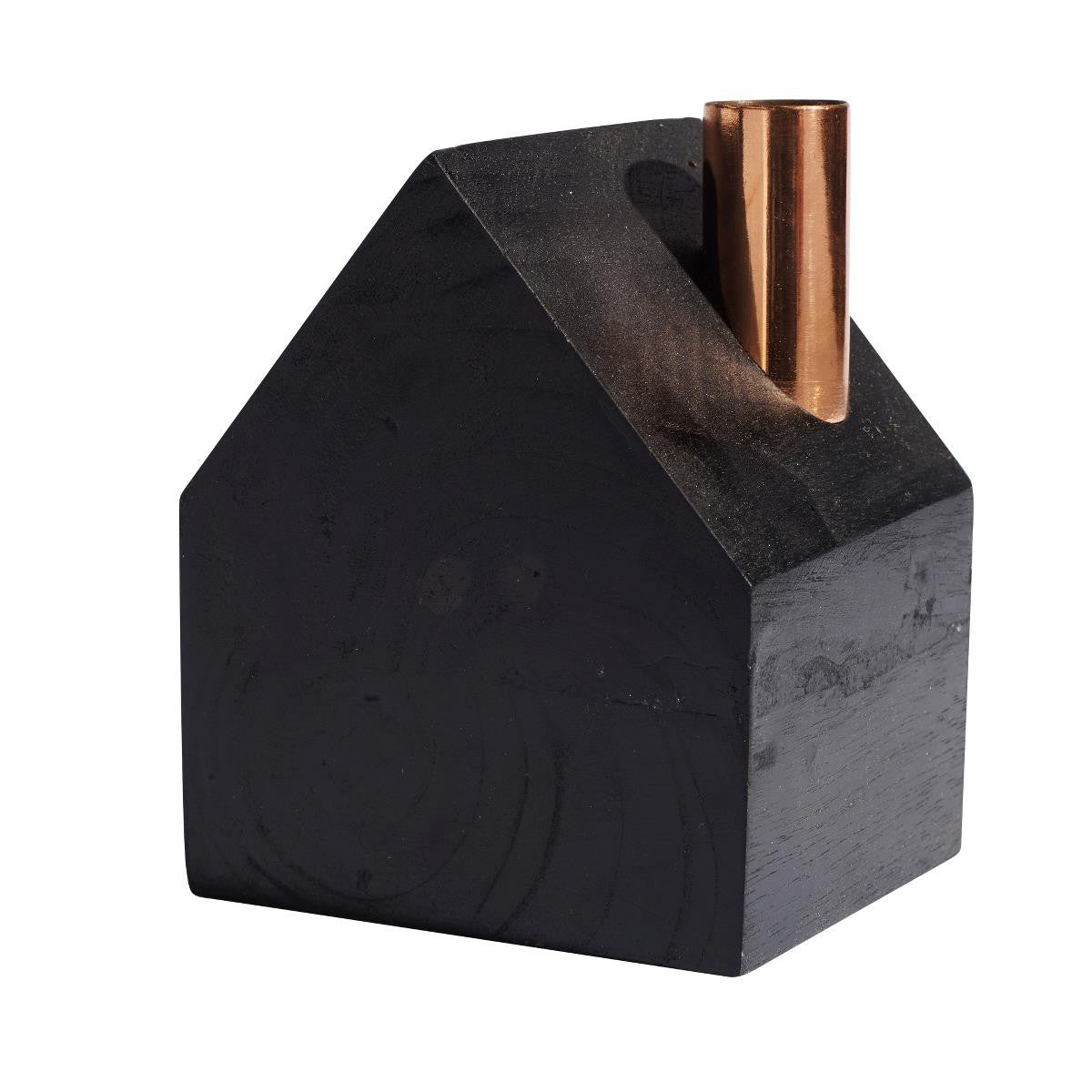 Dekorativer Kerzenhalter in Hausform aus recyceltem Teakholz. Mit oder ohne Kerze ein besonderes Schmuckstück, das zusammen mit anderen Häusern zu einem kleinen Dorf dekoriert werden kann.