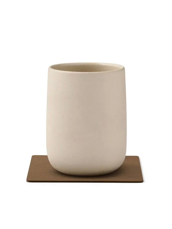 Glasuntersetzer aus recyceltem Öko-Tex Leder und Naturkautschuk. Die Oberfläche ist leicht mit einem feuchten Tuch zu reinigen. Klassische quadratische Form mit einer geriffelten Cordstruktur als Oberfläche.