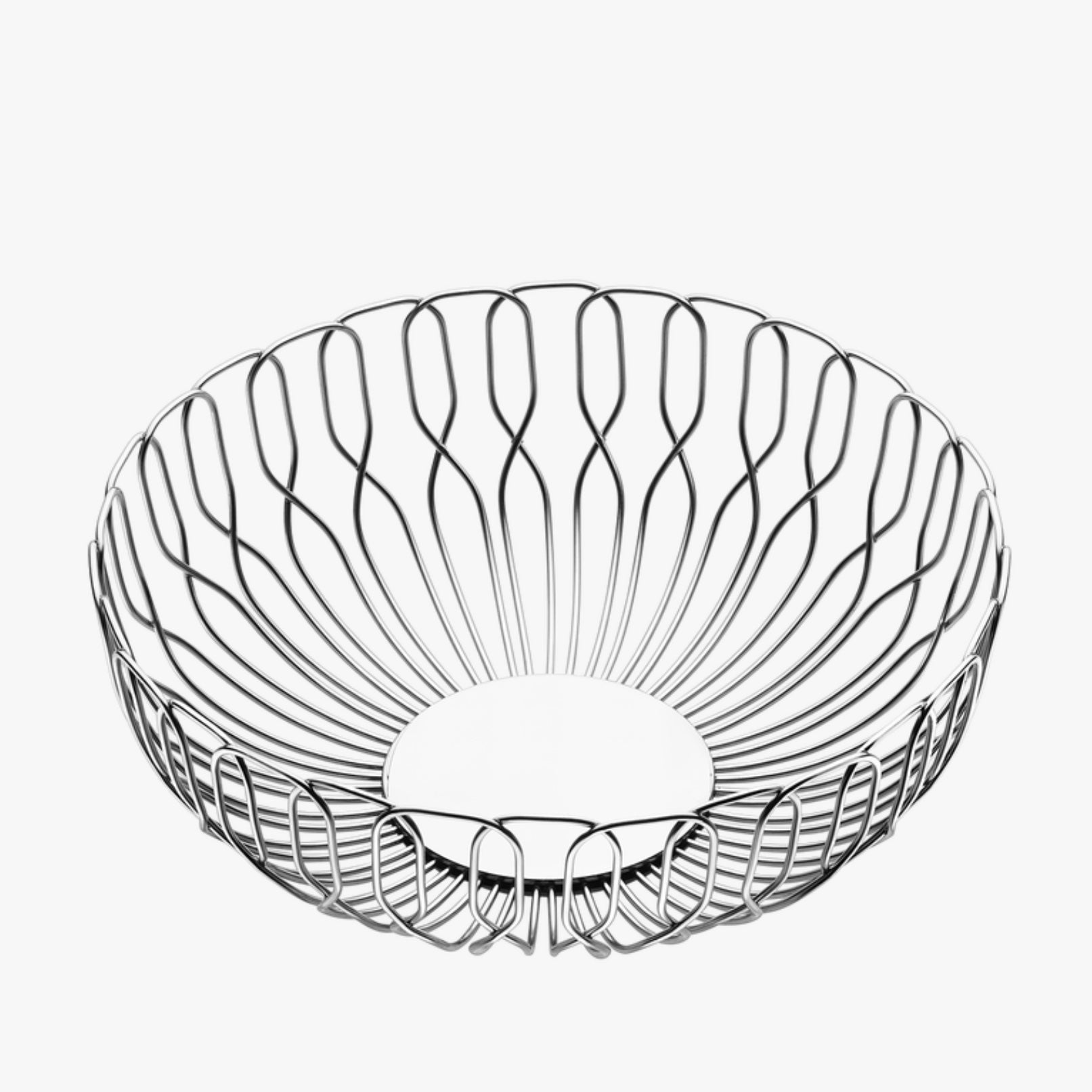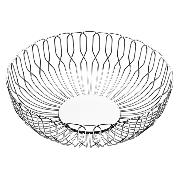 Die gewebte Form dieses Brotkorbs aus Draht ist eine Referenz an die Formen der anderen Produkte der Alfredo Kollektion. In 2 Größen erhältlich. Größe S für 2-3 Brötchen, Größe L für bis zu 6 Brötchen.