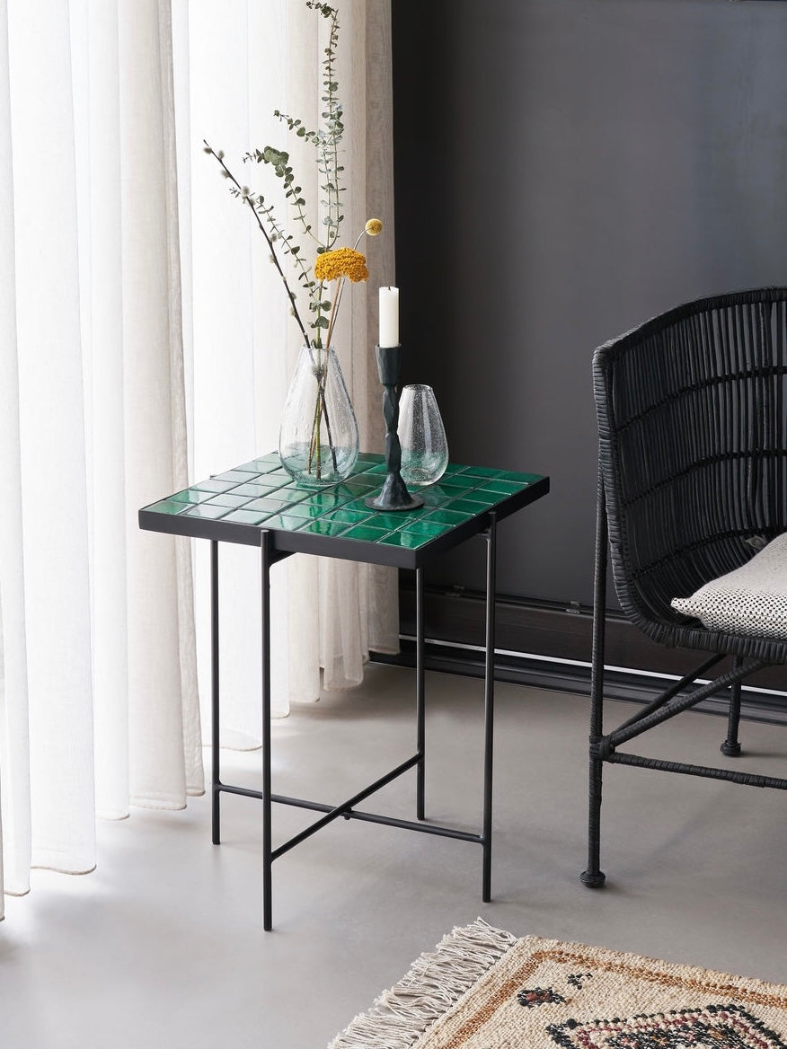 Der Kuna-Fliesentisch ist Charme pur. House Doctor hat dem Beistelltisch eine moderne Farbe gegeben, damit du deiner Einrichtung einen Farbtupfer verleihen kannst oder mit schwarz dezent bleiben willst. Stell den Tisch in den Flur oder in einer Ecke des Wohnzimmers, oder neben der Couch als Beistelltisch. Als Alternative zum großen Couchtisch kannst du zwei oder mehr Kuna-Tische zusammenstellen und so deiner Einrichtung eine eindrucksvolle und persönliche Note geben.