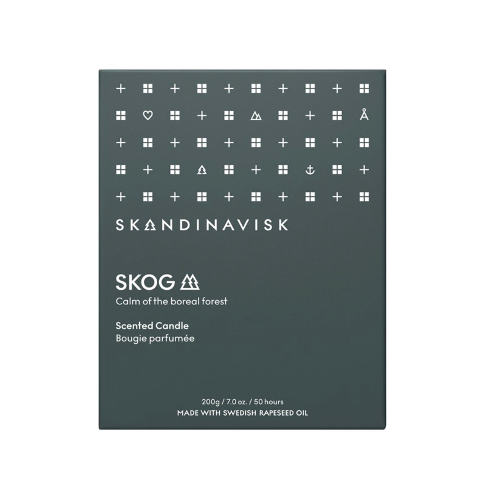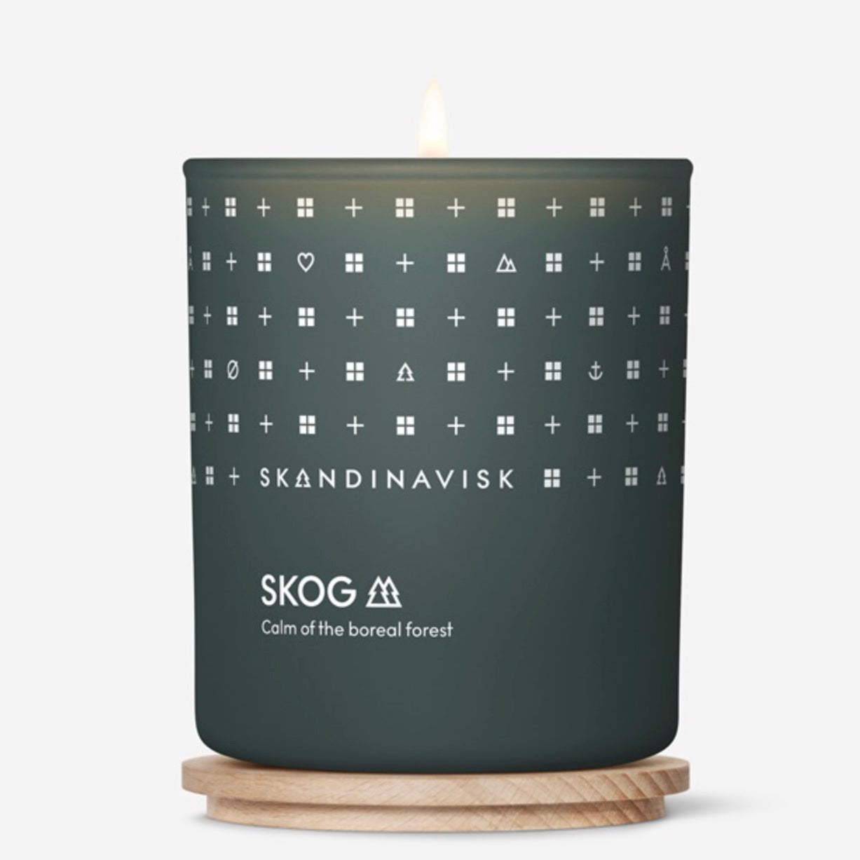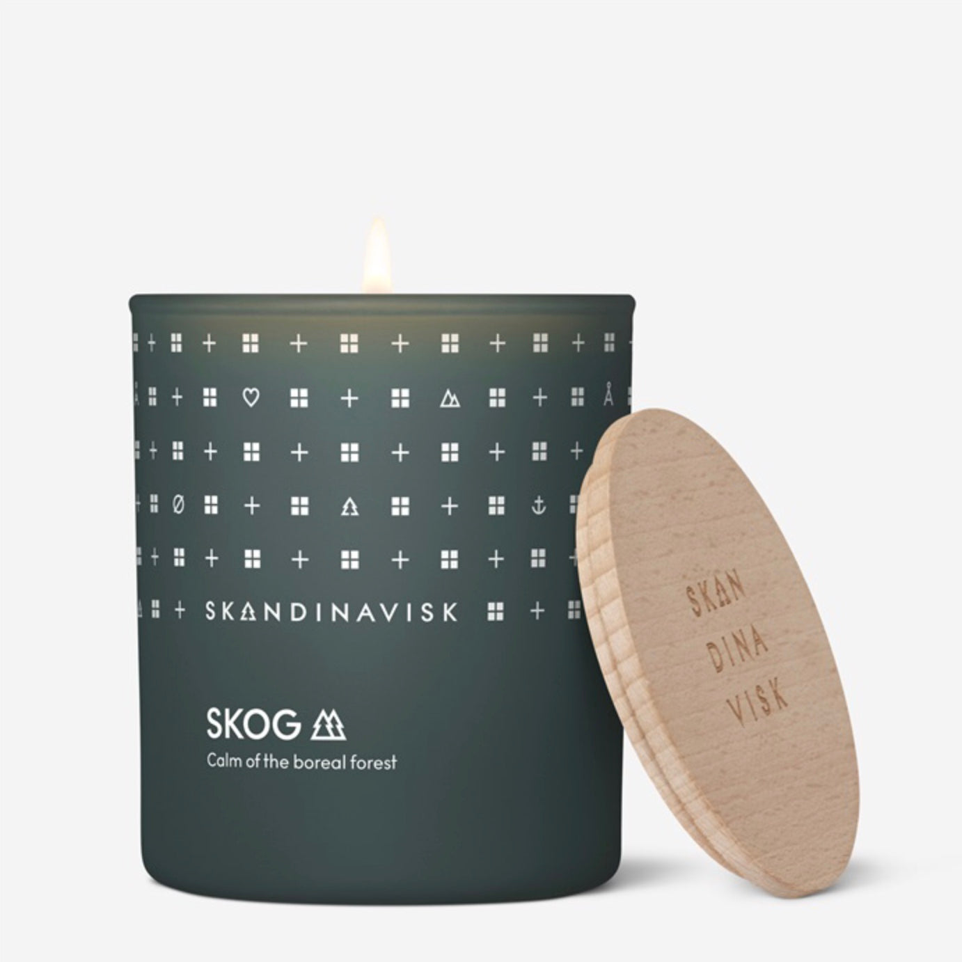 Duftkerze, hergestellt aus Wachs aus nachhaltiger, schwedischer Rapssaat mit Baumwolldocht und mit natürlichen Geruchsstoffen. Belebende Duftnoten von Pinien-und Tannenwäldern, Baumlilien und Leder im dekorativen, bemalten Glasgefäss mit Buchenholzdeckel. Dekorative Verpackung, ideal auch zum Verschenken.