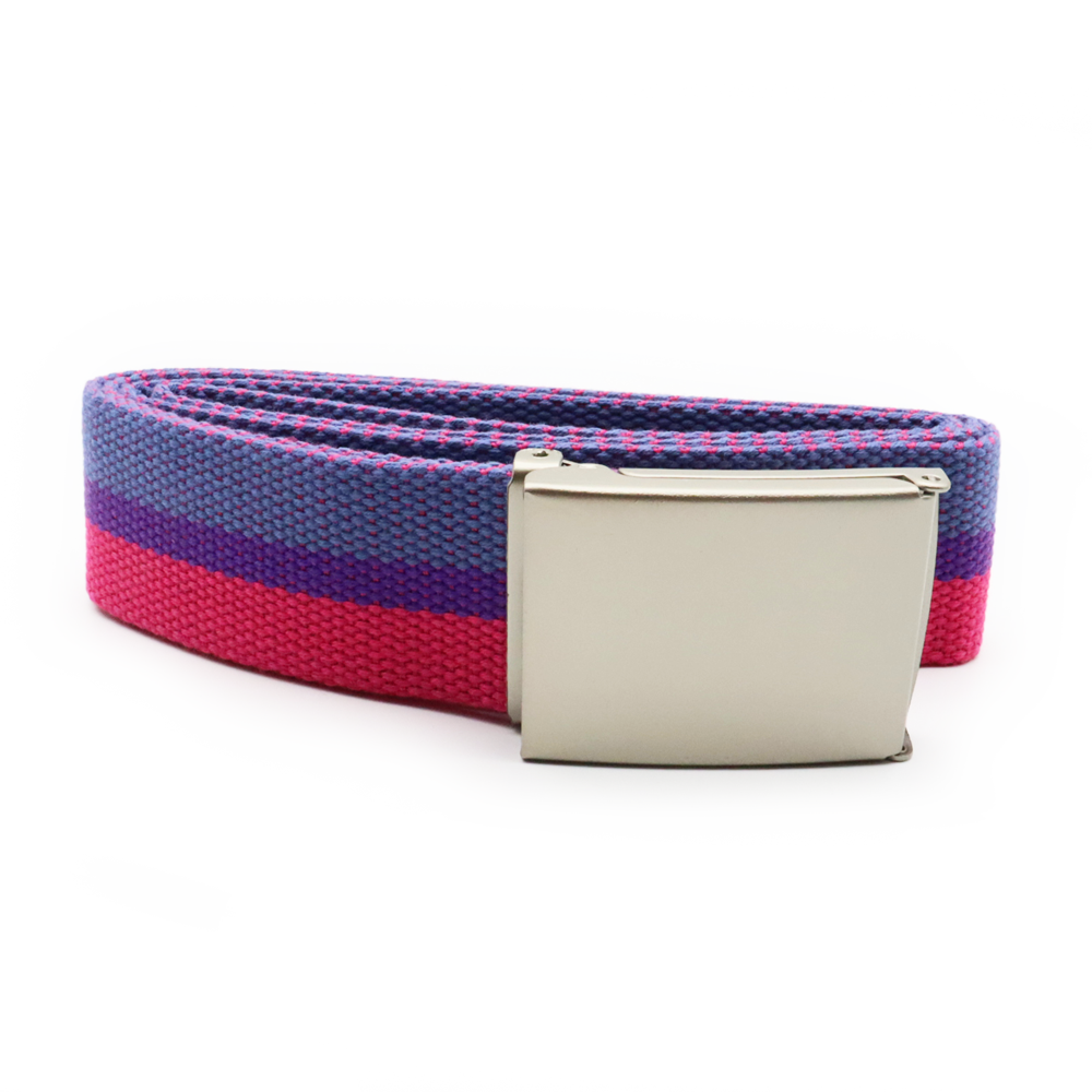Colorful belts in all sorts of Pride designs, from classic (rainbow) to bisexual and non-binary. Have fun!