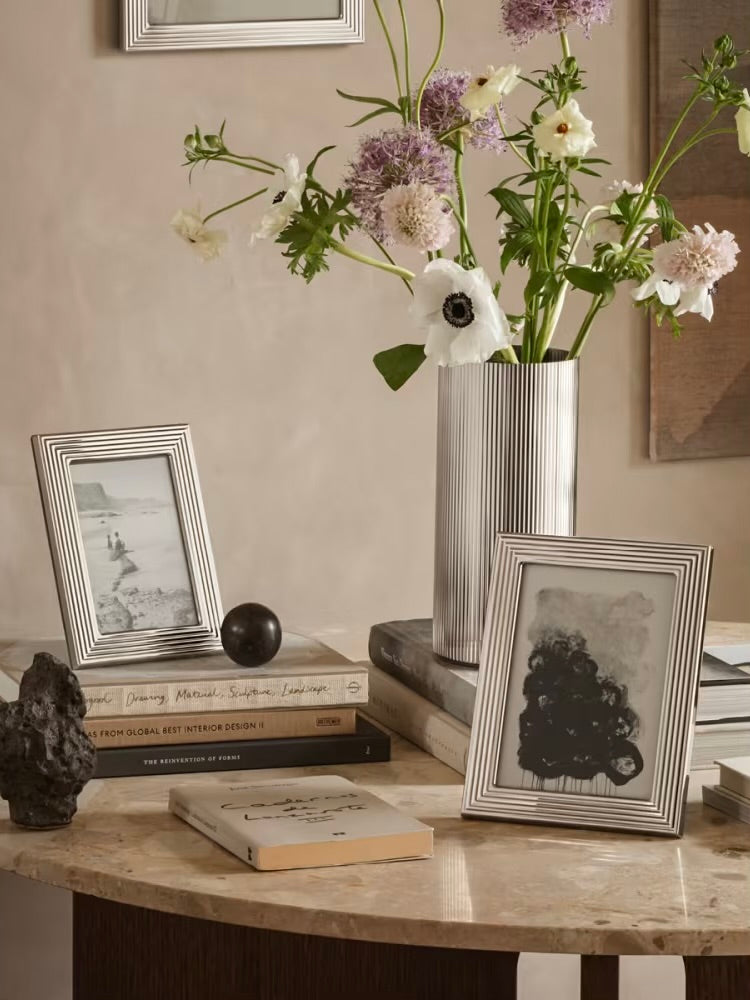 Das legendäre, geriffelte Design, das die Bernadotte Kollektion auszeichnet, macht diesen schönen Bilderrahmen zu etwas Besonderem. Der Rahmen ist aus Edelstahl und Glas hergestellt und mit seinem eleganten, raffinierten Design ideal für unvergessliche Bilder. Ein neuartiges Magnetsystem verbindet den Rahmen, der sowohl senkrecht als auch waagerecht stehen oder einfach an der Wand montiert werden kann.