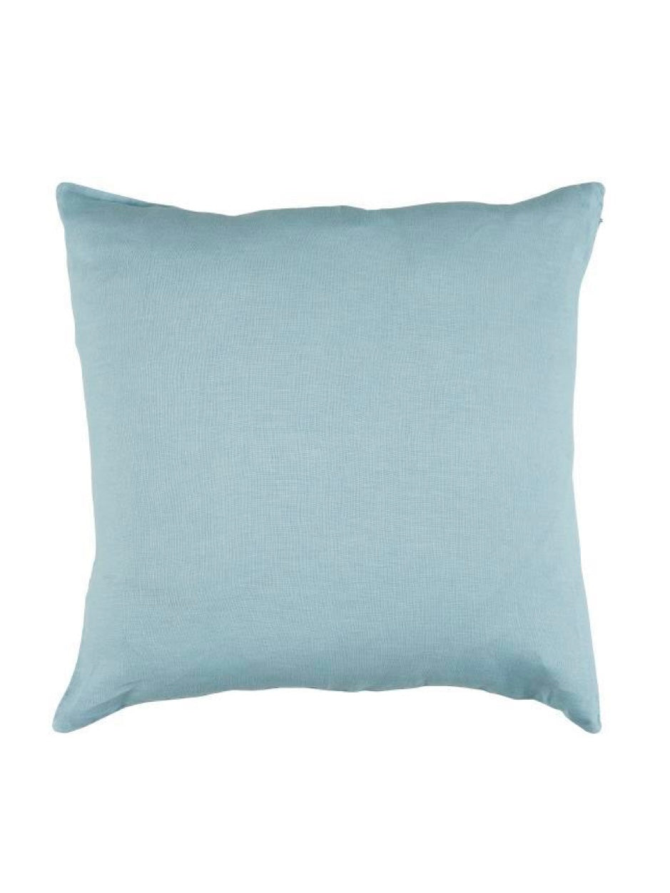 Der Bezug ist aus 100% Leinen gewebt, mit Reißverschluss zu schließen und wird mit Inlay Kissen geliefert.