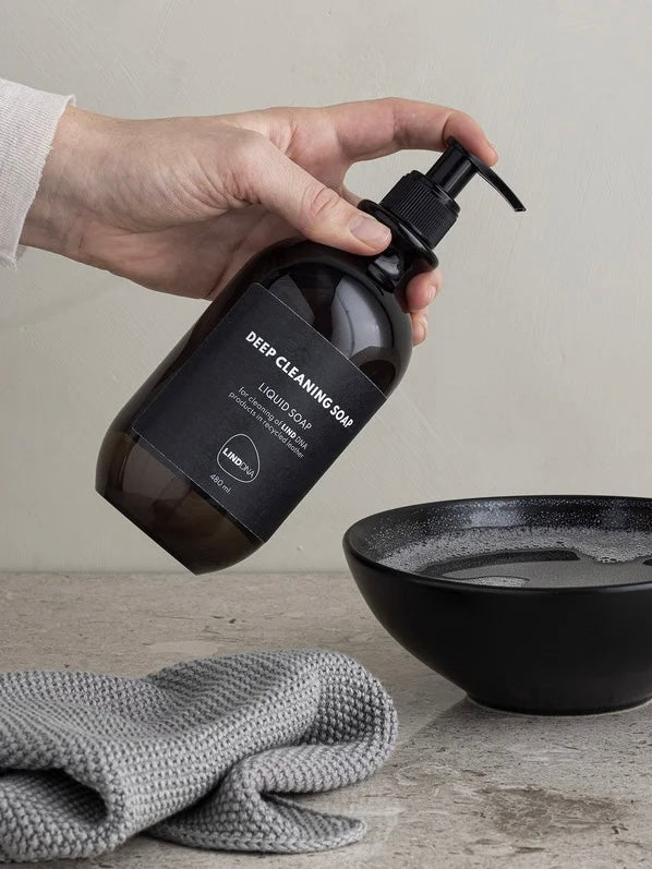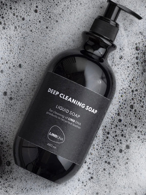 DEEP CLEANING SOAP ist eine Flüssigseife, die speziell für die Tiefenreinigung deiner LIND DNA Tischsets und Glasuntersetzer aus recyceltem Leder entwickelt wurde. Löse einfach die Seife in etwas Wasser, wische deine Tischsets vorsichtig mit einem Schwamm und lasse die Seife aufschäumen. Anschließend den Schaum mit einem feuchten Tuch entfernen. Bei hartnäckigen Flecken den Schaum einige Minuten einwirken lassen, bevor er mit einem feuchten Tuch entfernt wird.
