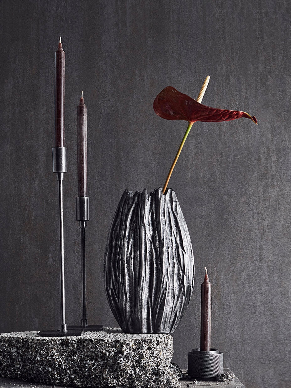 Minimalistischer Teelichthalter aus gegossenem Aluminium. Auch für Stabkerzen nutzbar. Die feine Netzstruktur aus Aluminium gibt dem Teelichthalter seinen Industrie Look. Eine perfekte Ergänzung zu Holzmöbeln und zu Glaseinrichtungen. Sehr schön auch zu den Kerzenständern Moment zu dekorieren.