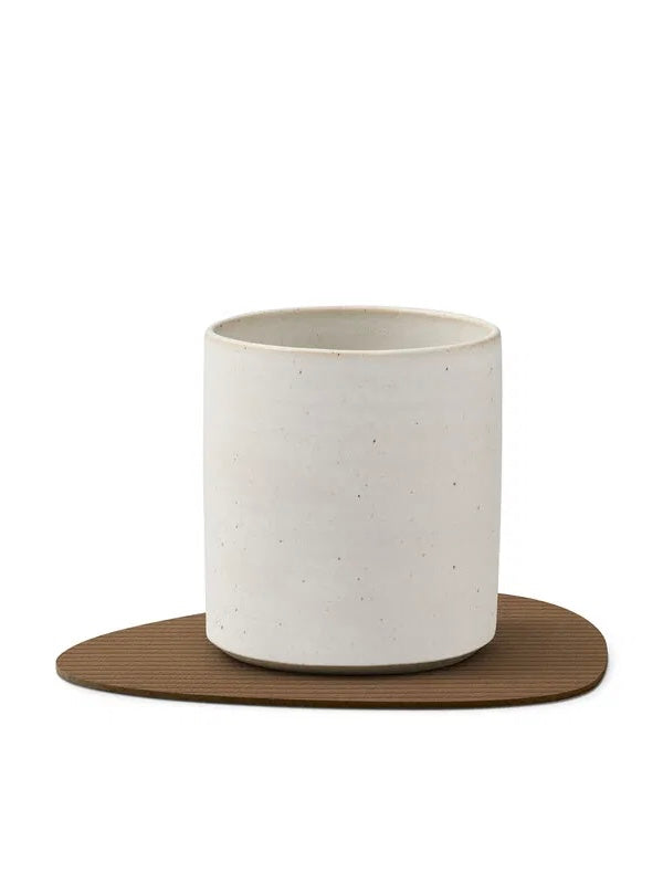 Glasuntersetzer aus recyceltem Öko-Tex Leder und Naturkautschuk. Die Oberfläche ist leicht mit einem feuchten Tuch zu reinigen. Ausgefallene kurvige Form mit einer geriffelten Cordstruktur als Oberfläche.